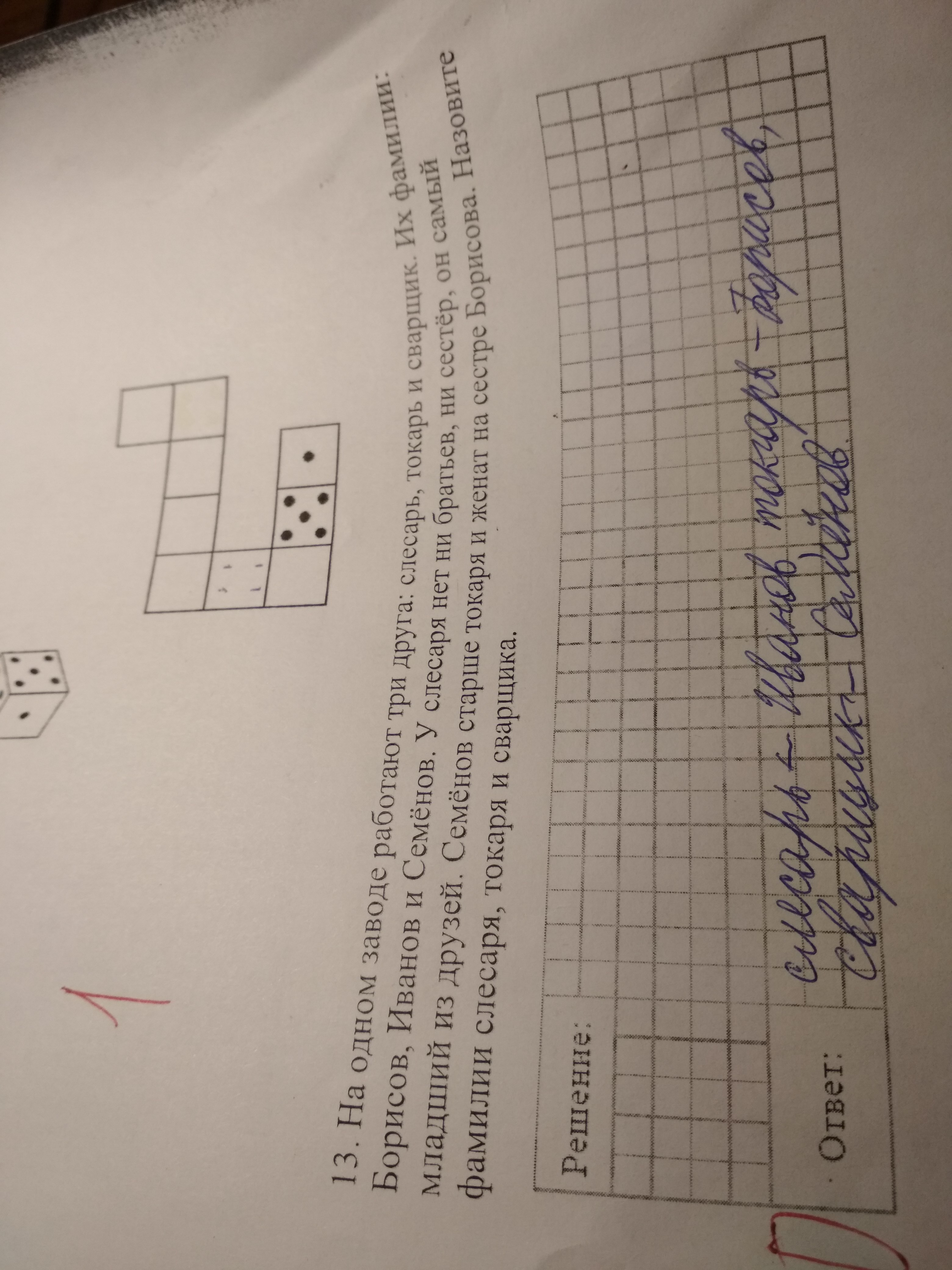 13. На одном заводе работают три друга слесарь токарь и сварщик их фамилии Борисов Иванов и Семёнов у слесаря нет ни братьев ни сестер он самый младший из друзей Семёнов старше токаря и женат на сестре Борисова Назовите фамилии слесаря токаря и сварщика