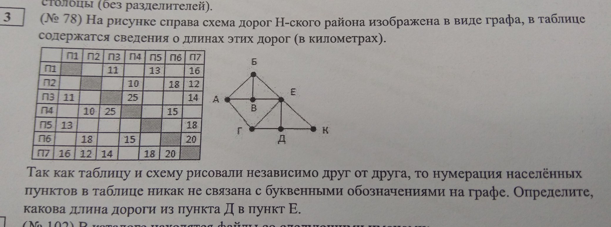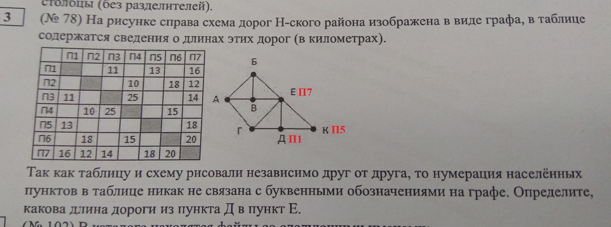 Нам нужна длина дороги ДЕ значит П1П7. Смотрим таблицу.
