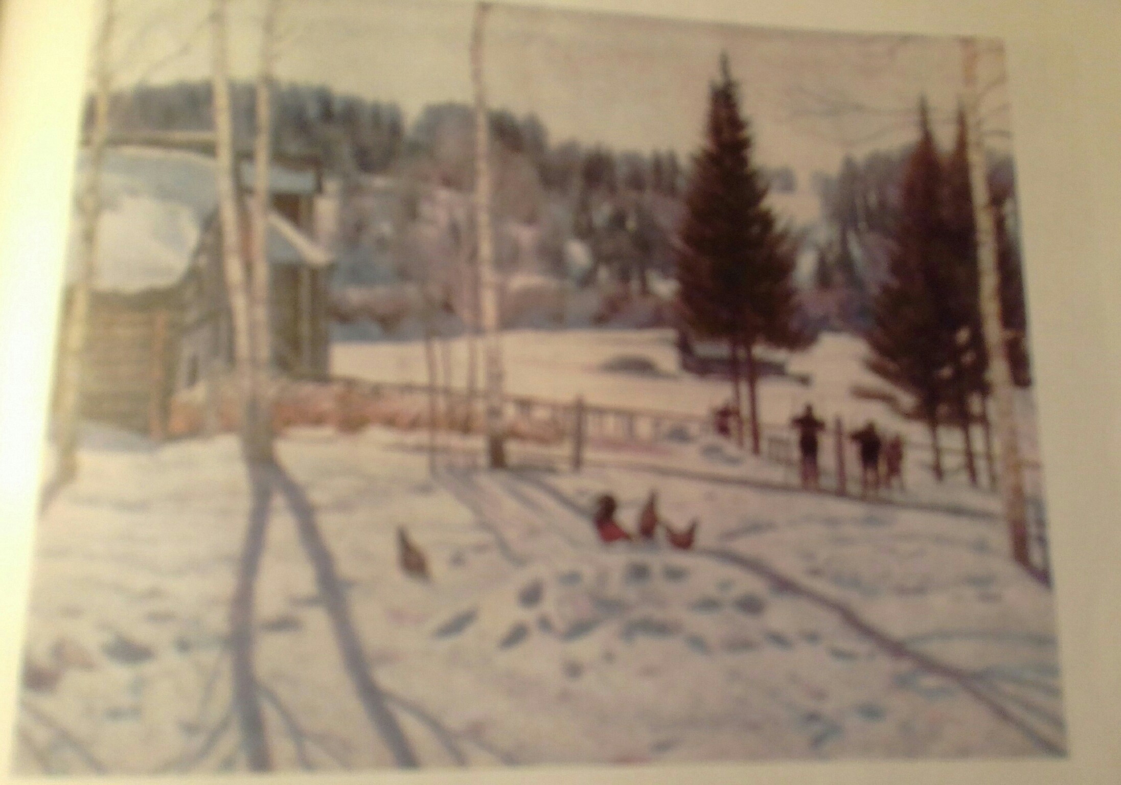 Не впервые художник обращается к зимней пейзажной тематике. А Лигачево и вовсе стало именем нарицательным в его творчестве. Картина "Конец зимы. Полдень" - переносит нас в излюбленное художником Подмосковное местечко, в котором зима, русская, настоящая изображается в нескольких ипостасях. То мы видим ее изображенной художником сказочной, пушистой, волшебной, окутывающей лес в белые шали, то она вдруг становится блеклой, уходящей, отступающей, дающей весне дорогу.