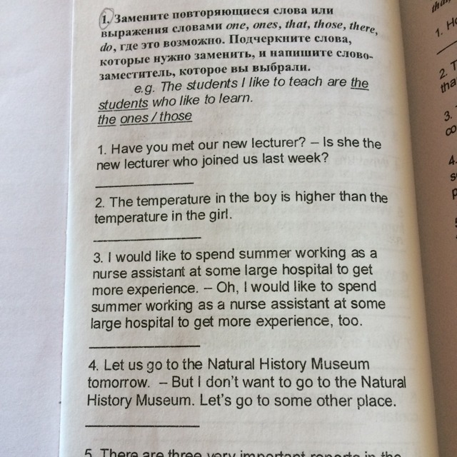 1. new lecturer (подчеркнуть); the one (взамен)