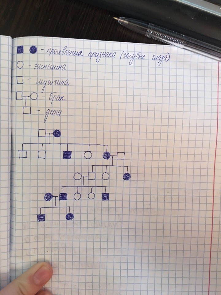Составьте пожалуйста схему родословную , чтобы там было несколько поколений . Ну там мама,папа, бабушка ,дедушка, дети, прабабушка ,прадедушка . И что бы был какой нибудь признак который передавался по наследству например голубые глаза. В конце типо вывод.