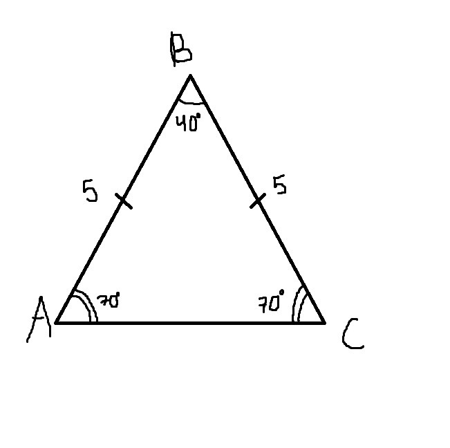 1. Постройте равнобедренный треугольник, если его боковые стороны равны по 5см, а угол между ними равен 40°.
