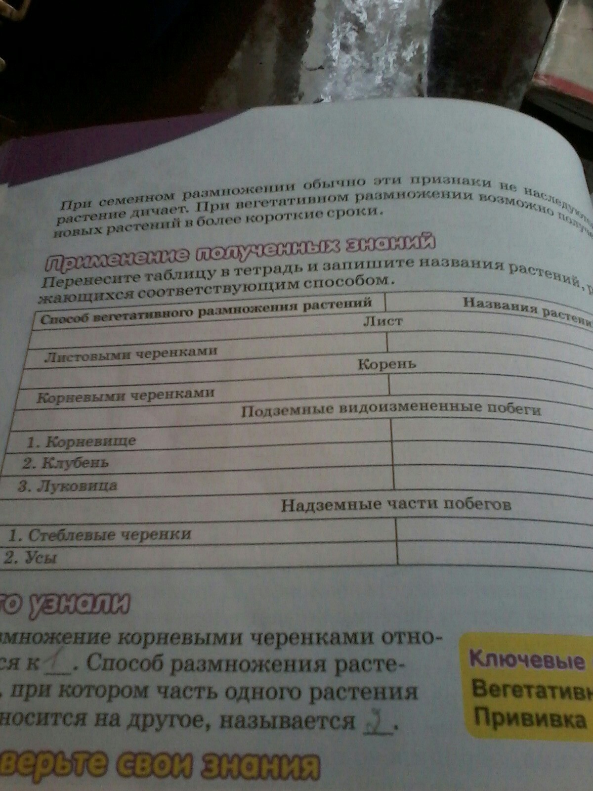 1) Запишите названия растений,размножающихся соотвествующим способом
