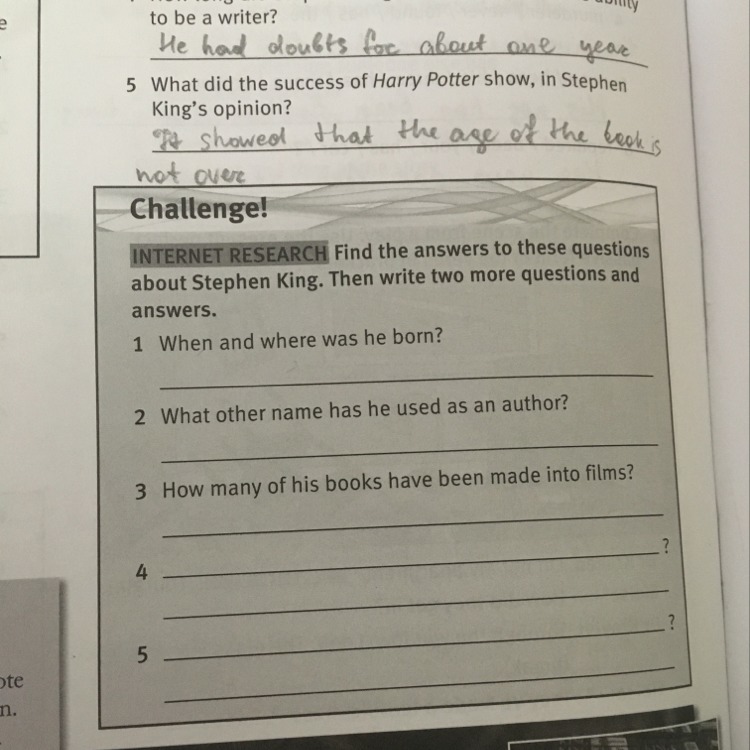 Прикрепи ещё текст про Стефана Кинга, там ответы должны быть