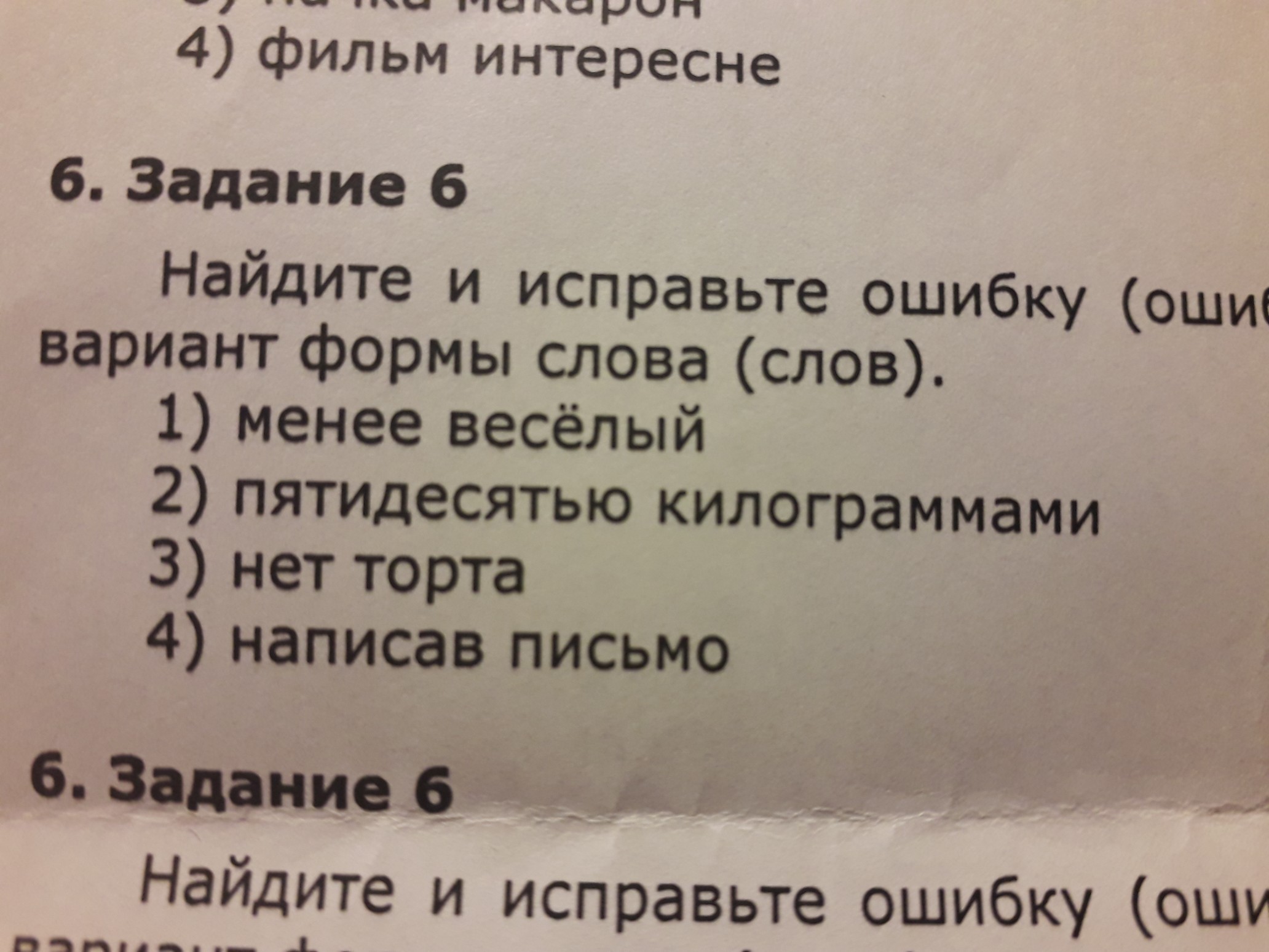6.Ошибка в варианте 2),нужно писать-пятьюдесятью килограммами.