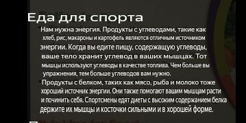 * Еда, содержащая белок, например мясо, рыба или молоко так же является хорошим источником энергии. Благодаря нему ваши мышцы так же будут расти и восстанавливаться. Спортсмены придерживаются продуктов, содержащих больше количество белков, чтобы держать свои мышцы и кости крепкими и в хорошем состоянии.