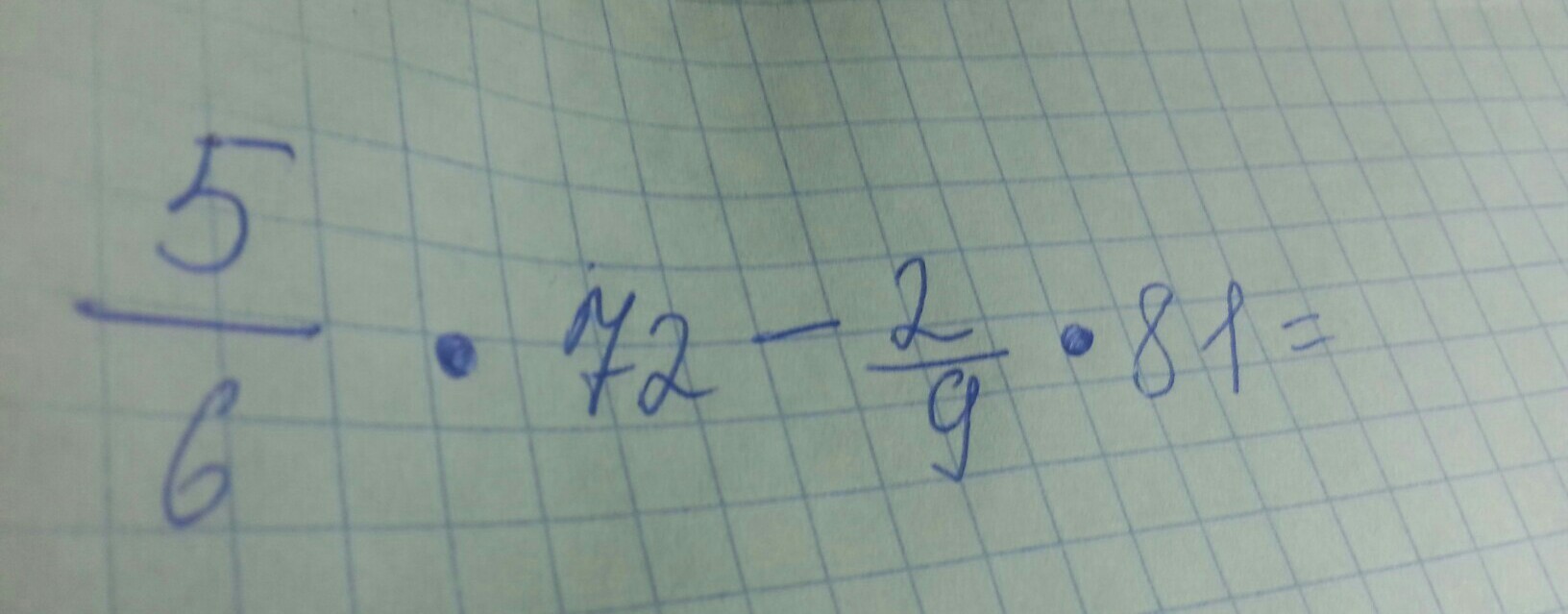 5/6*72-2/9*81=5/3*36/1-2/1*9/1=5/1*12/1-2/1*9/1=5/1*12/1-2/1*9/1=60/1-18/1=42/1=42