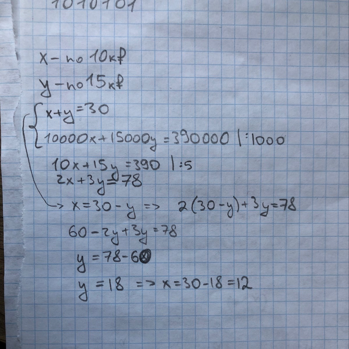 12 получили 10тыс, 18 - 15тыс. Решается системой