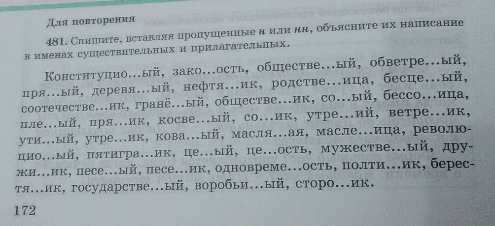 конституционный, законность, общественный, обветренный, пряный, деревянный, нефтяник, родственница, бесценный, соотечественник, граненный, общественник, сонный, бессонница, пленный, пряник, косвенный, сонник, утренний, ветреник, утиный, утренник, кованый, масляная, масленица, революционный, пятигранник, ценный, ценность, мужественный, дружинник, песенный, песенник, одновременность, полтинник, государственный, воробьиный, сторонник.