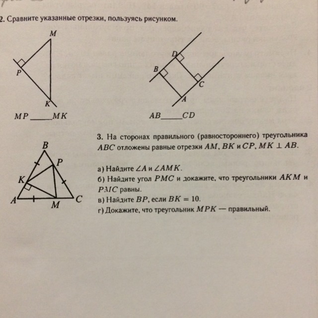 г)треугольники АМК=МPC=МВК по гипотенузе и острому углу(угол А=С=В, КВ=РС=АМ=>КР=РМ=МК=> треугольник МКР правильный