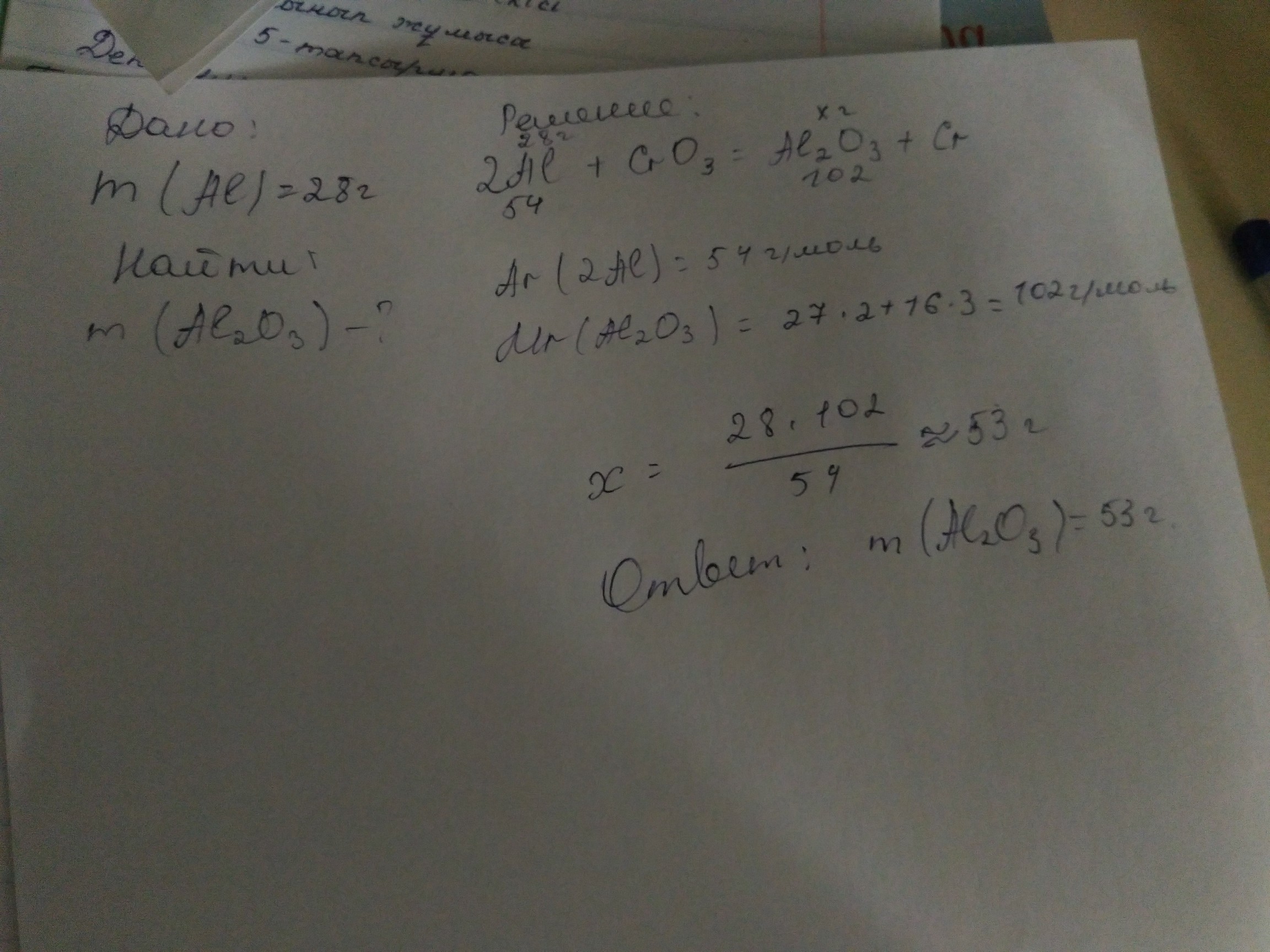 Найти массу оксида алюминия, полученного при взаимодействии 28 грамм алюминия с оксидом хрома(6)