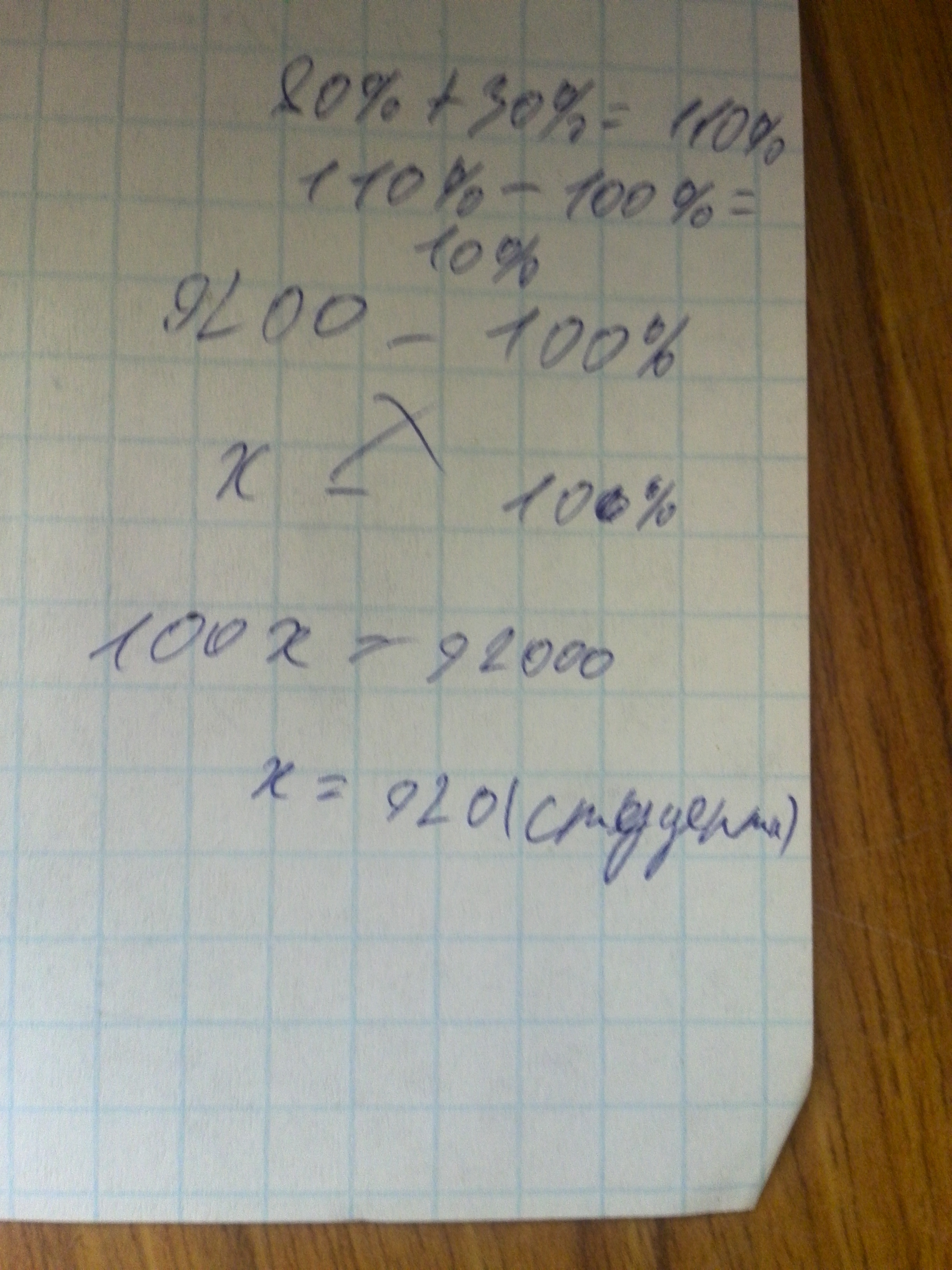 В институте 9200 студентов. Каждый студент изучает хотя бы один из двух иностранных языков : английский или испанский. английский язык изучают 80% студентов, а 30%- испанский. Сколько студентов изучают оба языка? Запишите решение и ответ.