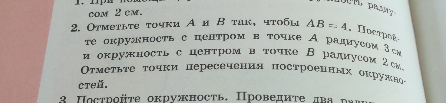 начерти 2 круга 1 6см 2 4см и поставь точки по середине и сделай пересечения