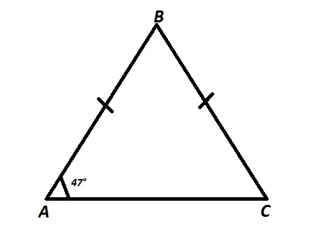По условию AB=BC ⇒ ΔABC - равносторонний. В равностороннем Δ-ке углы при основании равны. Тогда ∠A=∠C=47°. Во всяком треугольнике сумма углов равна 180°, тогда ∠B=180°-(∠A+∠C)=180-2·47=180-94=86°