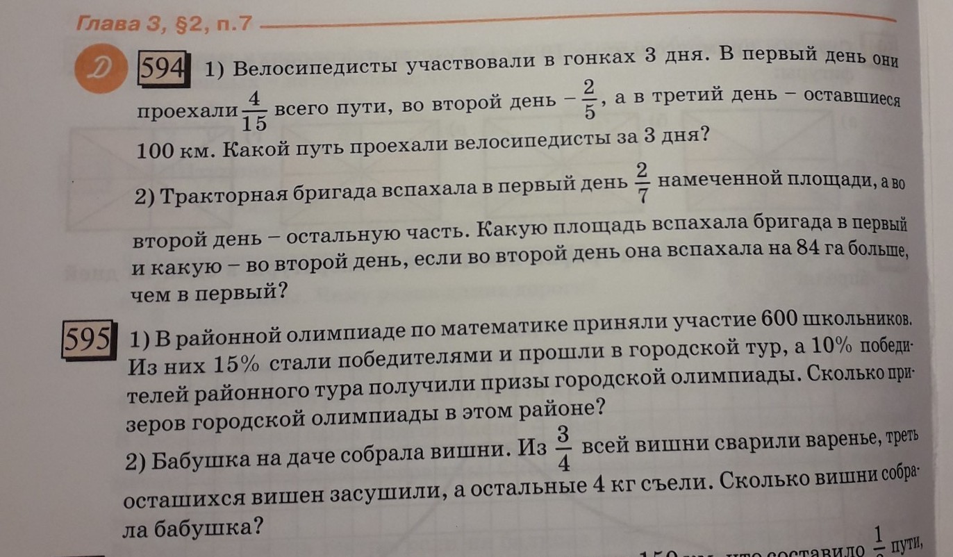 1) 2/5 + 4/15 = 6/15 + 4/15 = 10/15 = 2/3 проехали за 2 дня