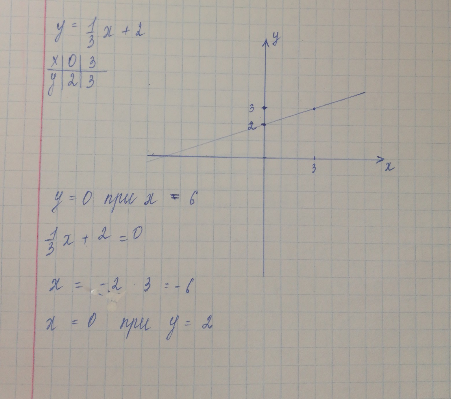 постройте график функции найдите координаты точек пересечения графика с осями координата y=1/3x+2