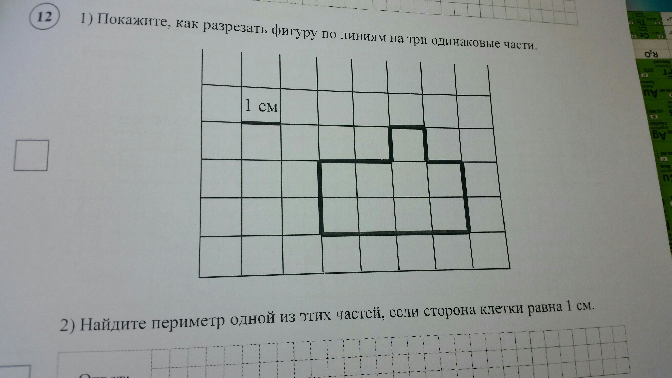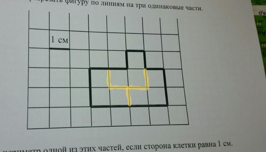 2)Найдите периметр одной из этих частей, если сторона клетки равна 1см.