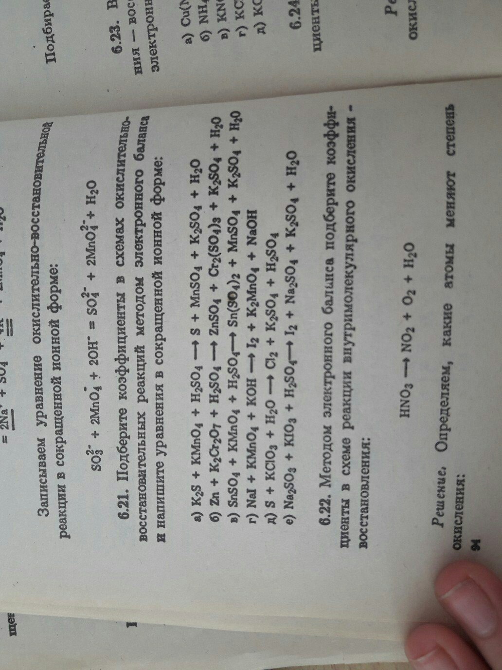 6.21)a)5K2S + 2KMnO4 + 8H2SO4 = 5S + 2MnSO4 + 6K2SO4 + 8H2OS(-2)-2e = S (0) |5 восстановитель, окисление