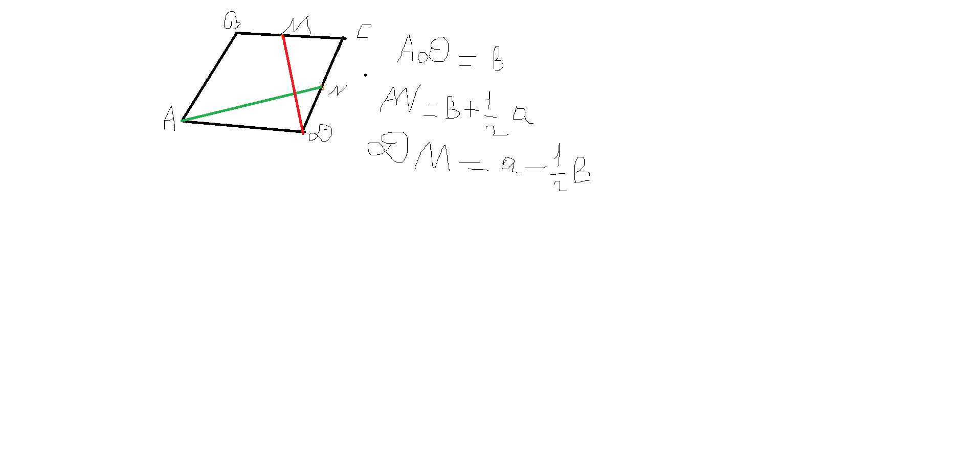 В параллелограмме ABCD точки M и N- середины сторон BC и CD. AB=вектору a, AD=вектору b. Выразите векторы AN и DM через векторы a и b. Докажите, что векторы неколлинеарны.