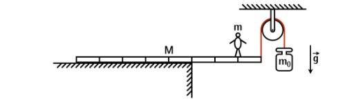 В противоположную сторону от силы тяжести человека и балки направлена сила реакции растяжения нити под весом груза m0*g с плечом L