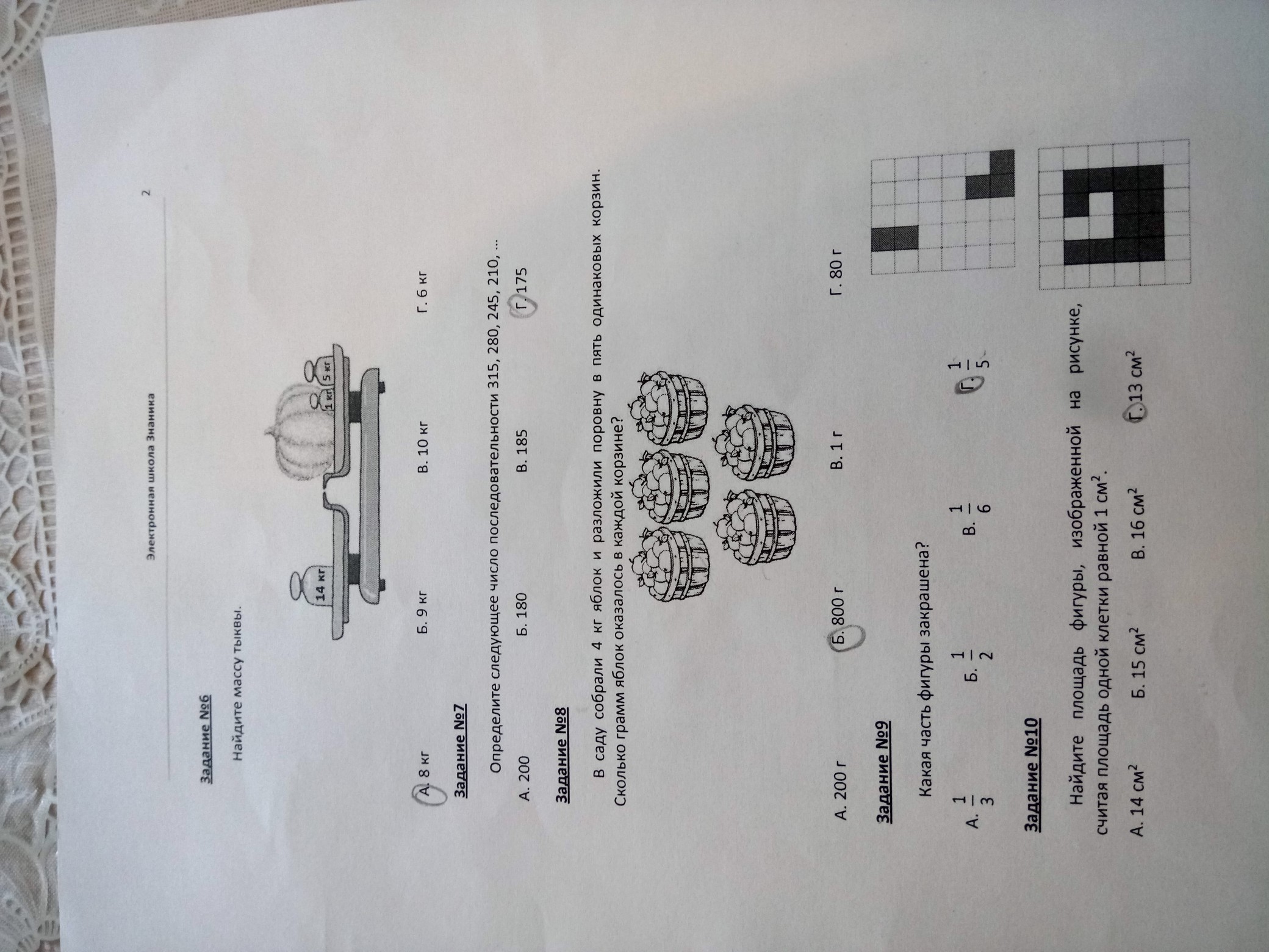помогите пожалуйста правильноли я отметил задание н.6? Найди массу тыквы.