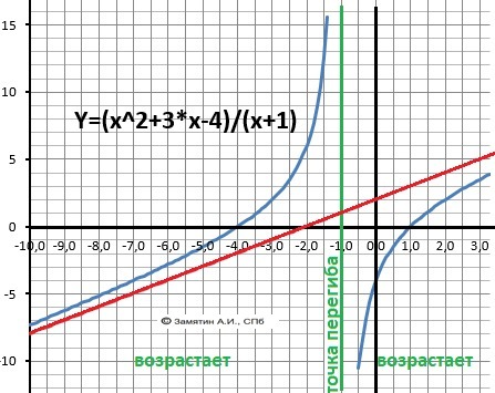 k = lim(+∞)Y(x)/x = (x²+3*x-4)/(x²+x) = 4. Уравнение асимптоты: Y = x.