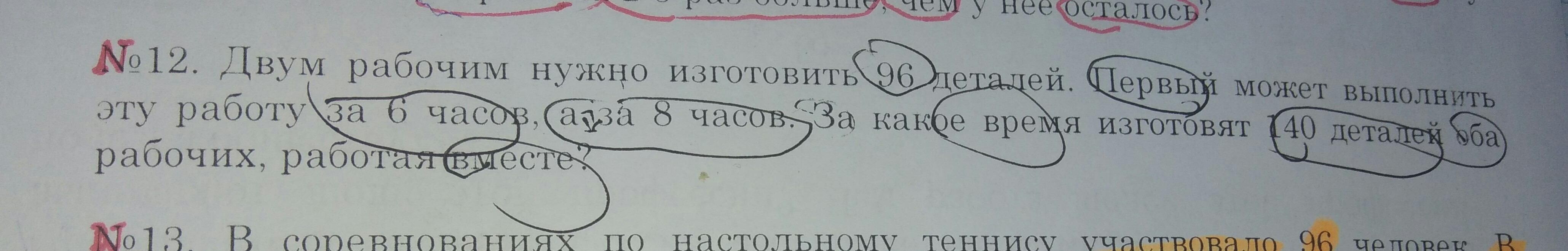 96/6 = 16(деталей за 1 час выполнит первый работник)