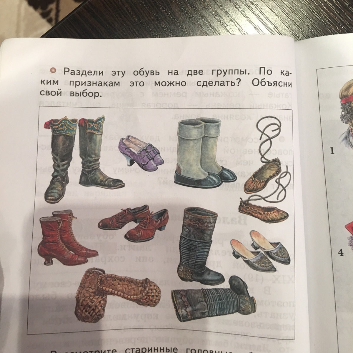 Раздели эту обувь на две группы по каким признакам это можно сделать объясни свой выбор