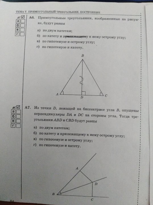 7.по гипотенузе и углу ДАЛЬШЕ САМ