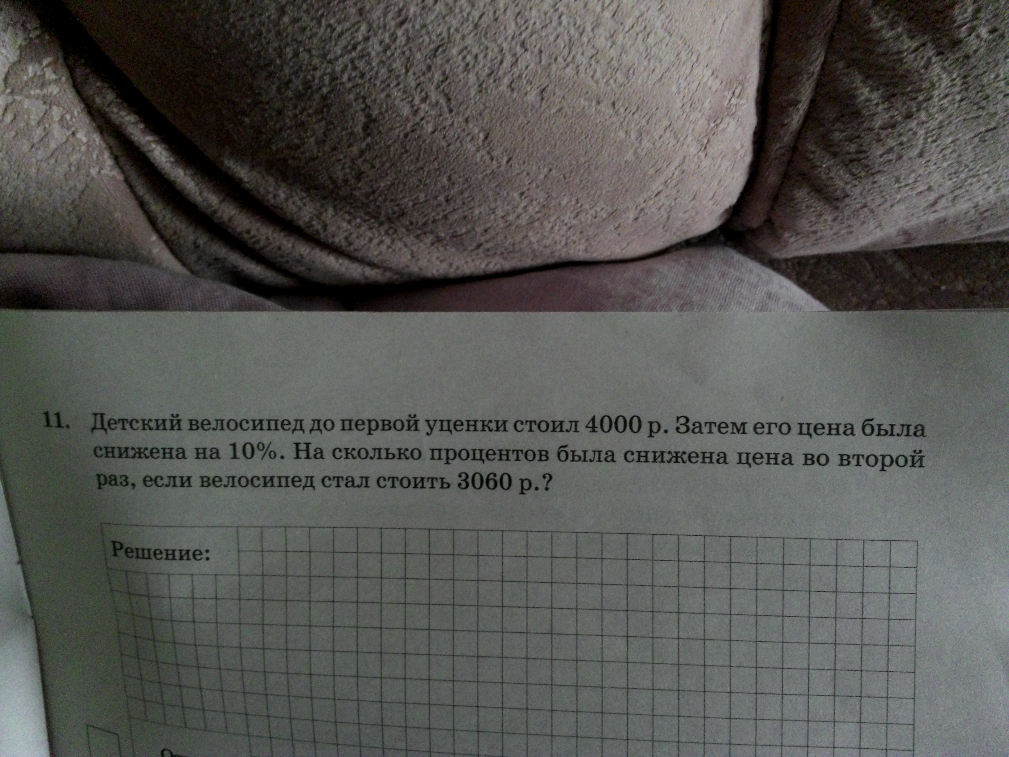 4000:100*90=3600 стал стоить велосипед после первой уценки