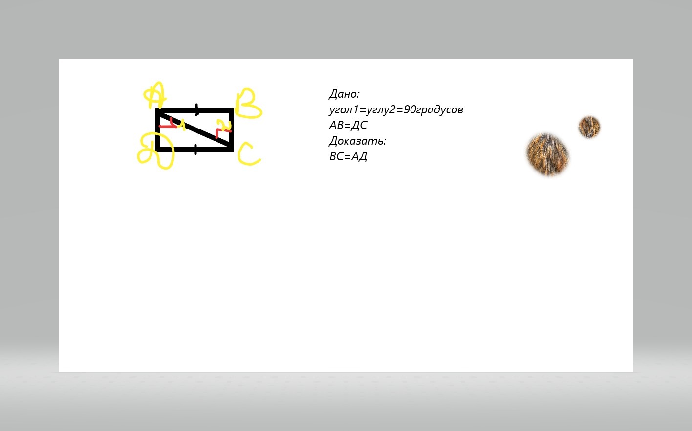 Трегольник АВС равен треугольнику АСД (т.к. угол 1=углу 2, АВ=ДС, АС общая сторона) по катету и гипотенузе, значит ВС=АД
