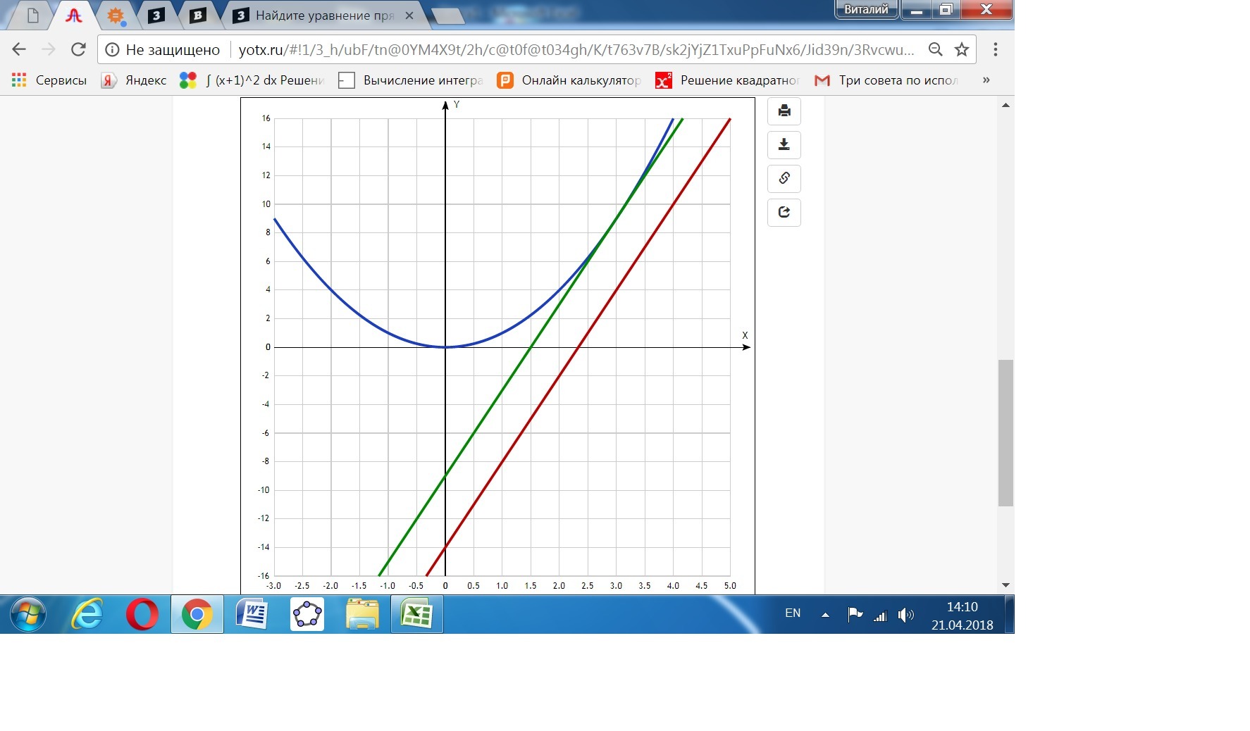 Теперь можно найти уравнение параллельной линии, проходящей через точку (3; 4) в виде у = кх + в, к = 6 по уравнению касательной.