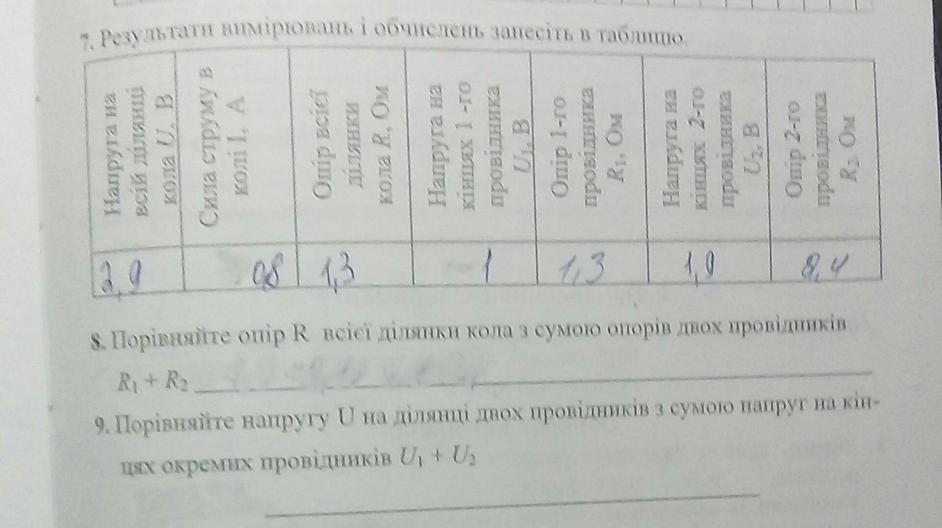 2) Чтобы сравнить общее напряжение U и общее напряжение на концах двух проводников, мы найдём данные из таблицы: