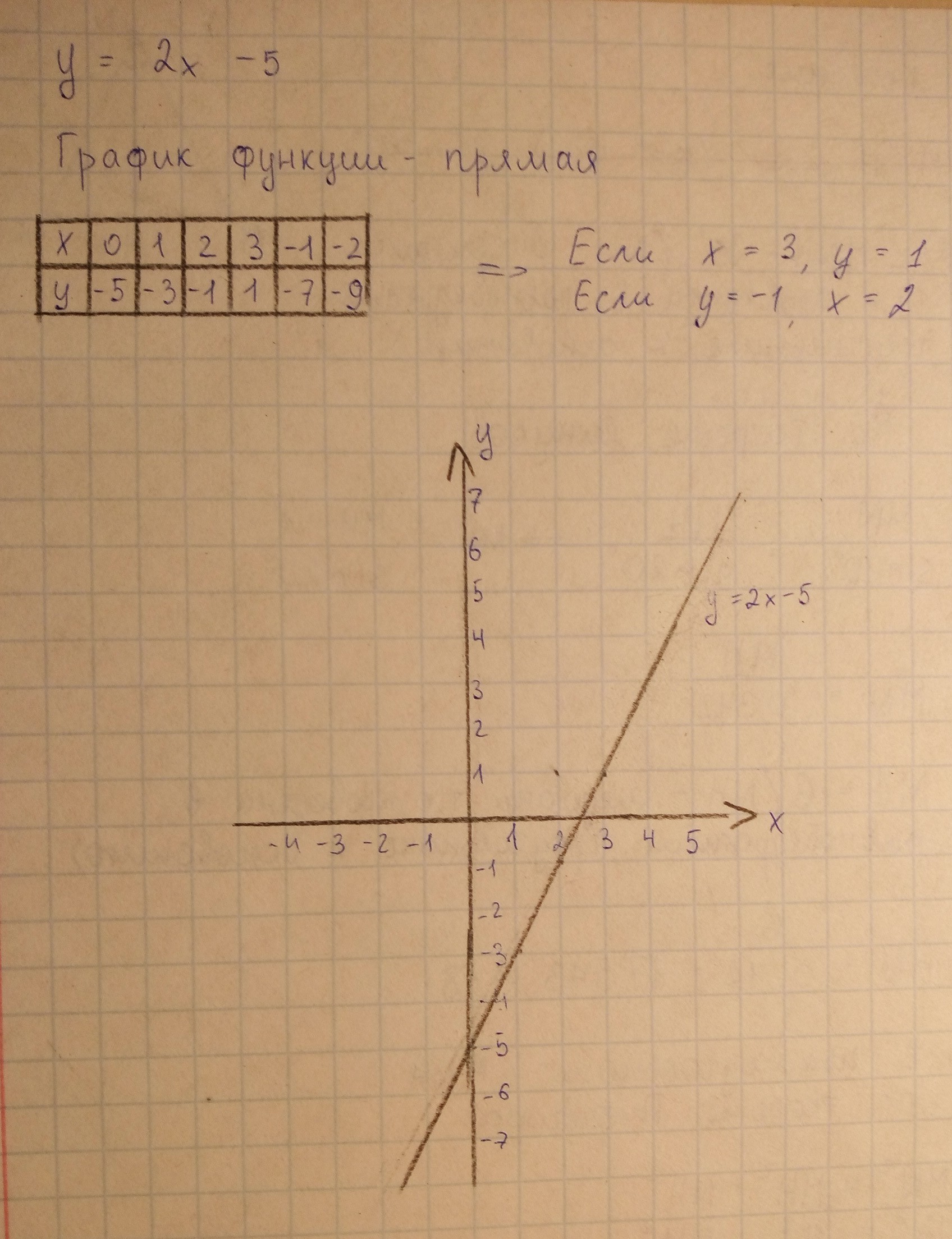 Постройте график функции y = 2x -5 .Пользуясь графиком найдите :