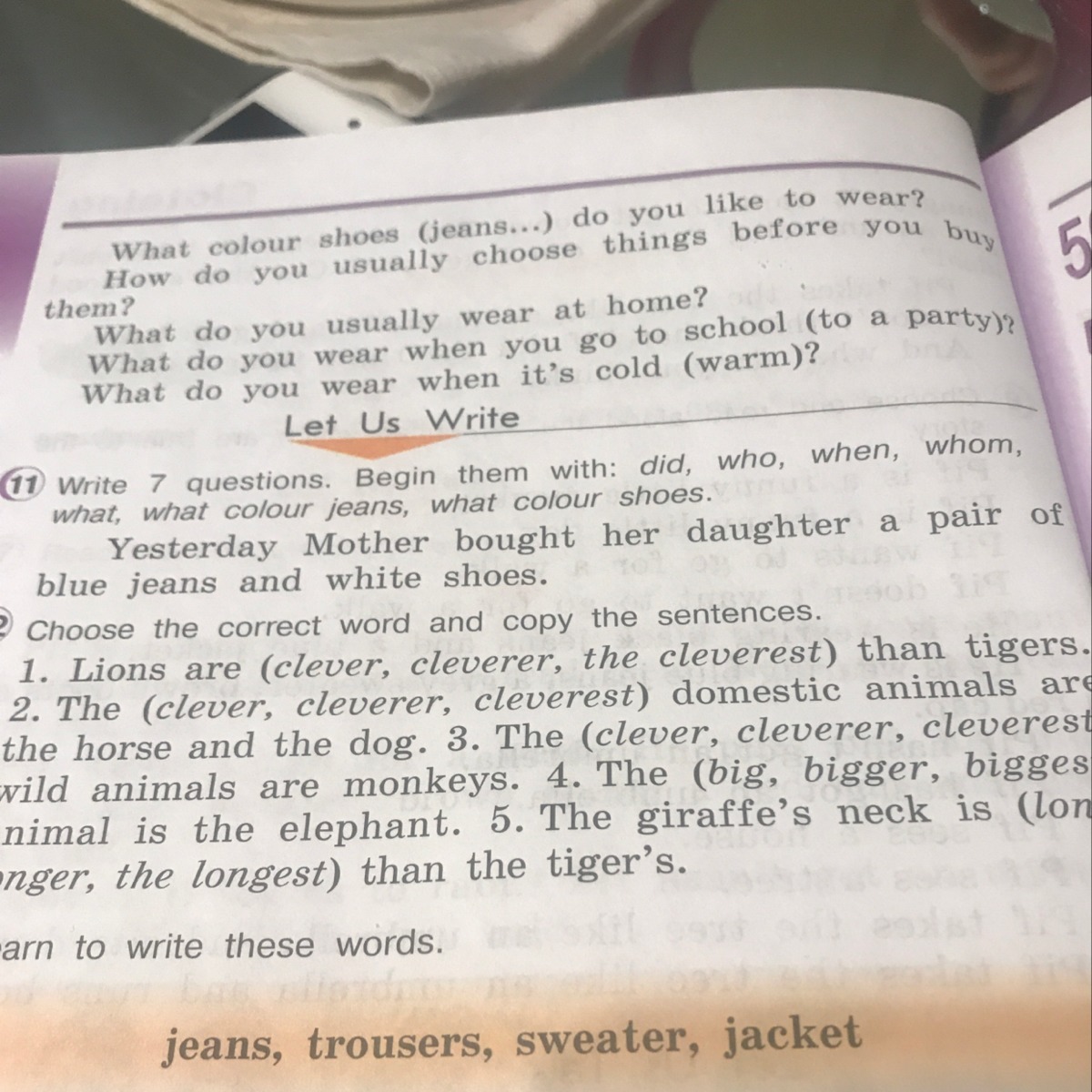 When mother bought her daughter a pair of blue jeans and white shoes ?