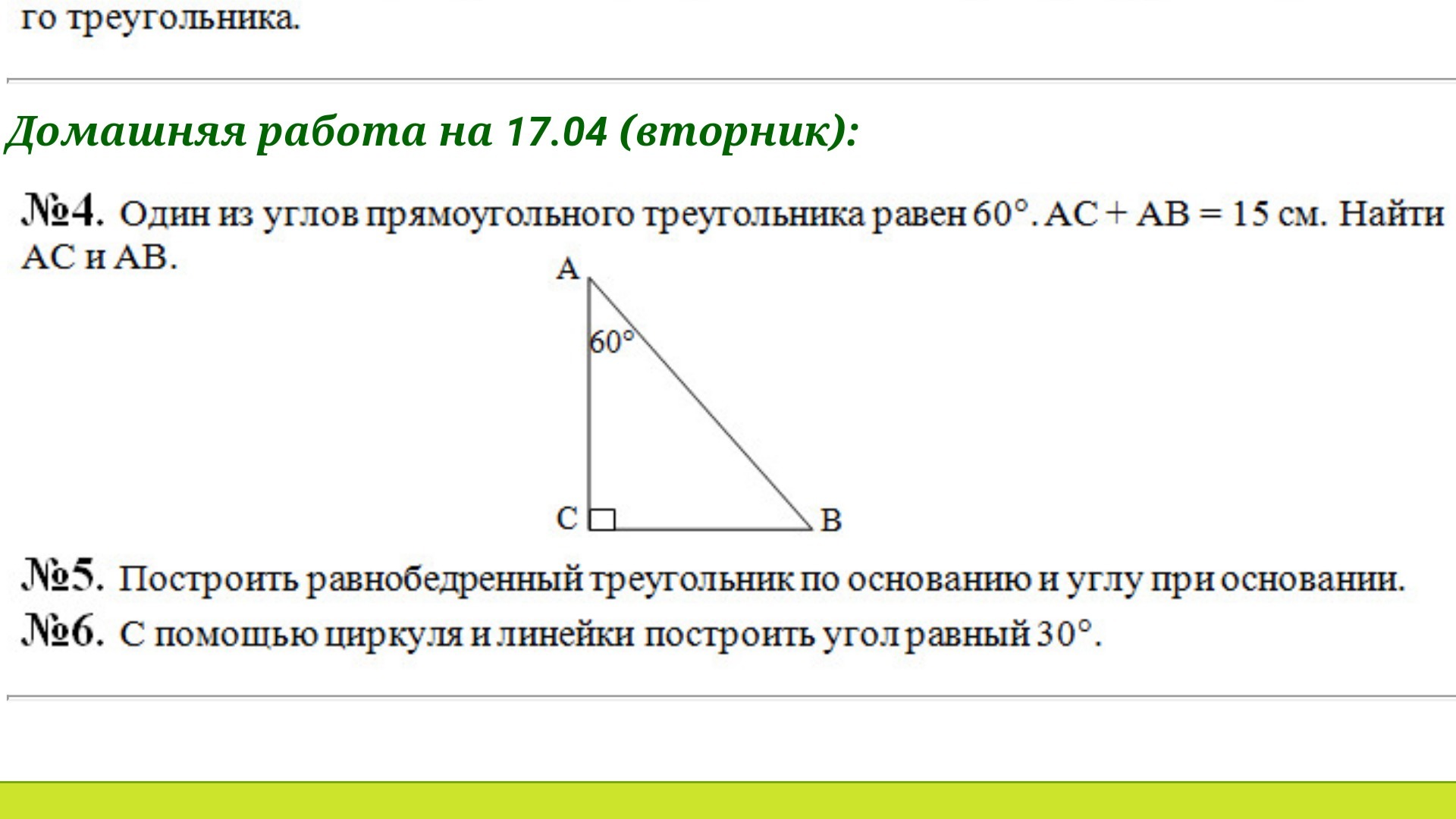 Один из углов прямоугольного треугольника равен 60 градусов. ac + ab = 15 см. найди ac и ab