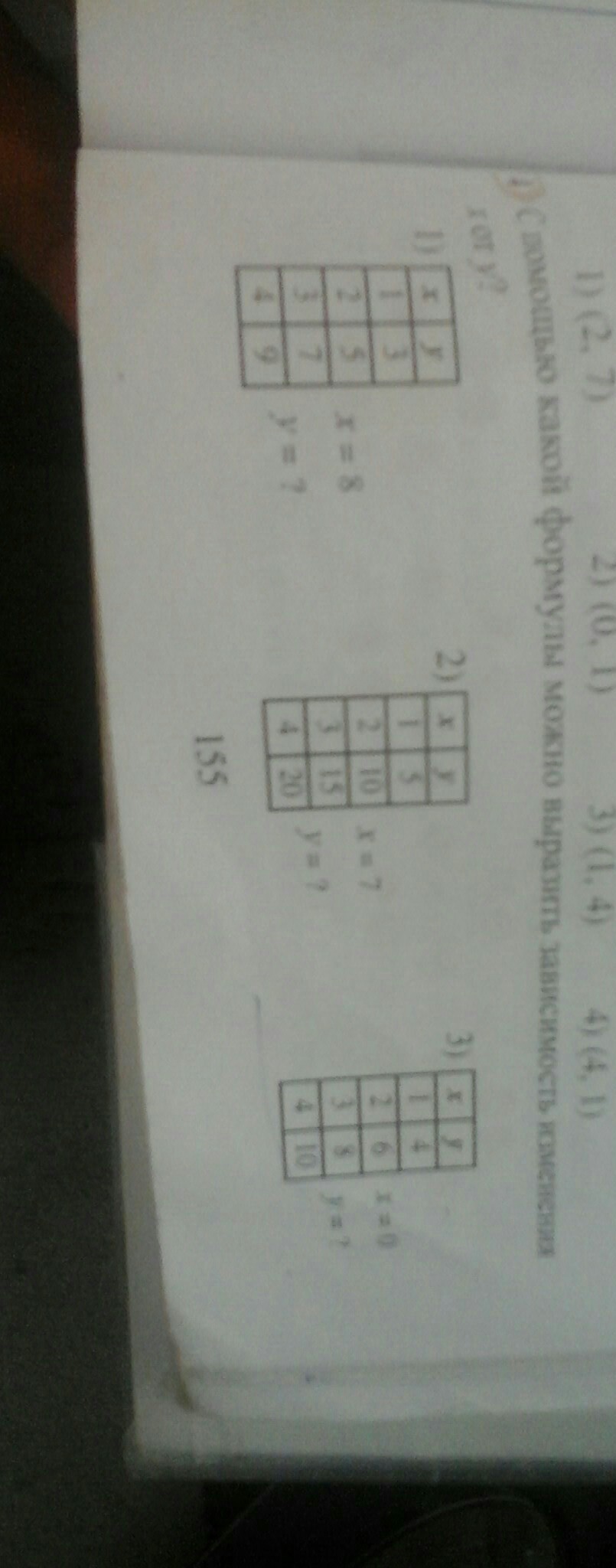 С помощью какой формулы можно выразить зависимость изменения Х от y. Помогите пожалуйста !В 1 столбике 1 3 2 5 3 7 4 9 . Во втором столбике 1 5 2 10 3 15 4 20. В 3 столбике 1 4 2 6 3 8 4 10