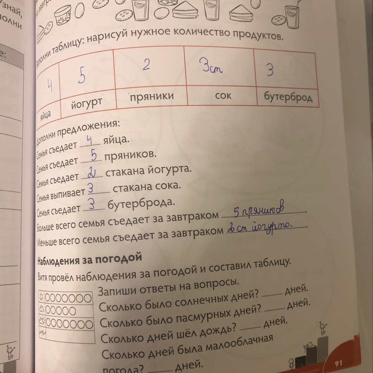 Солнечная погода- 7 дней ( нарисовано солнышко), кружки соответствуют дням.