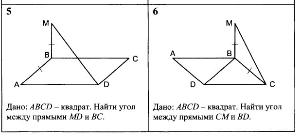 №5 Дано: ABCD - квадрат. Найти угол между прямыми MD и BC.