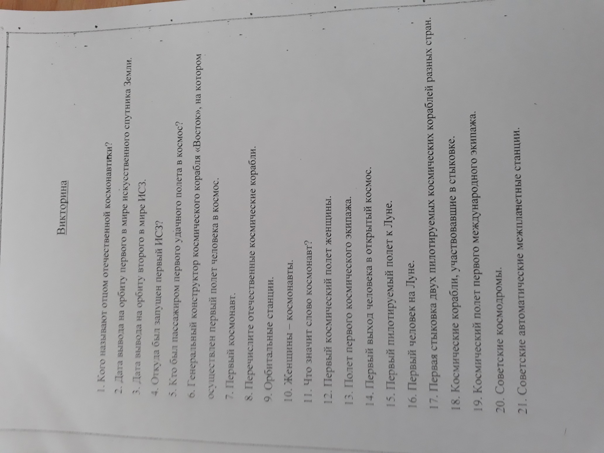 Викторина.1.Кого называют отцом отечественной космонавтики? 2.Дата вывода на орбиту первого в мире искуственного спутника Земли.