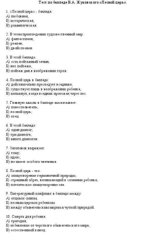 тест по балладе лесной царь