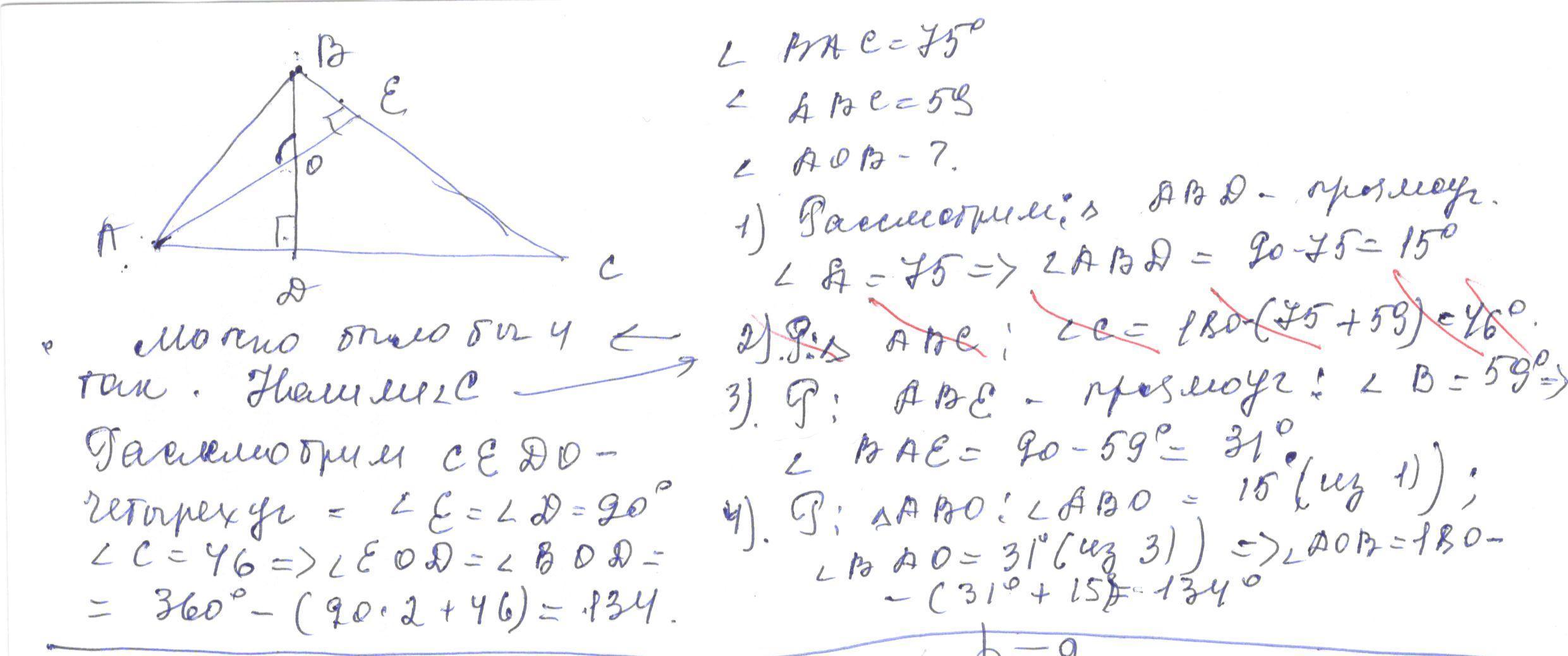 ∠АСВ = 180°-(75°+59°) = 46° (сумма углов 3-угольника = 180°)