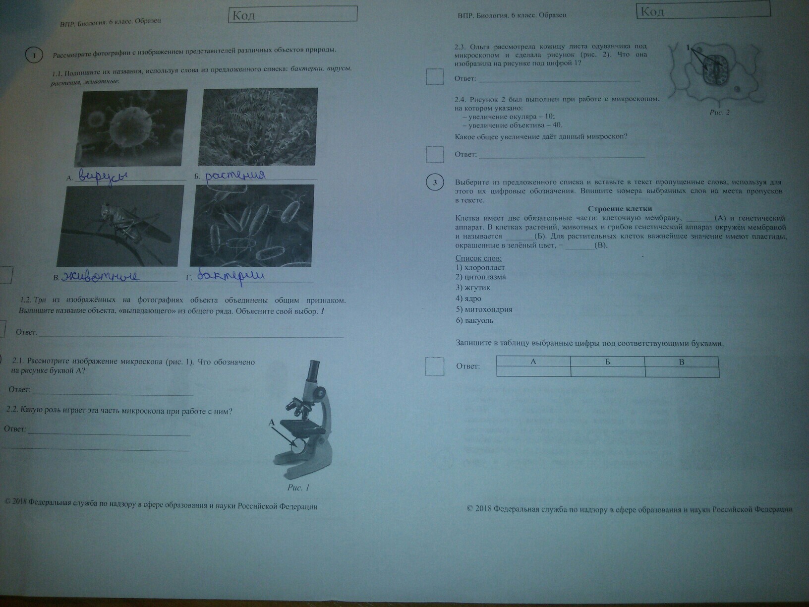 1.2 Из общего ряда выпадают вирусы, поскольку они имеют не клеточное строение.