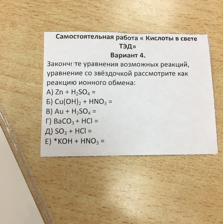 Д) SO3+HCl реакция не пойдёт, т.к кислота не реагирует с кислотными оксидами.
