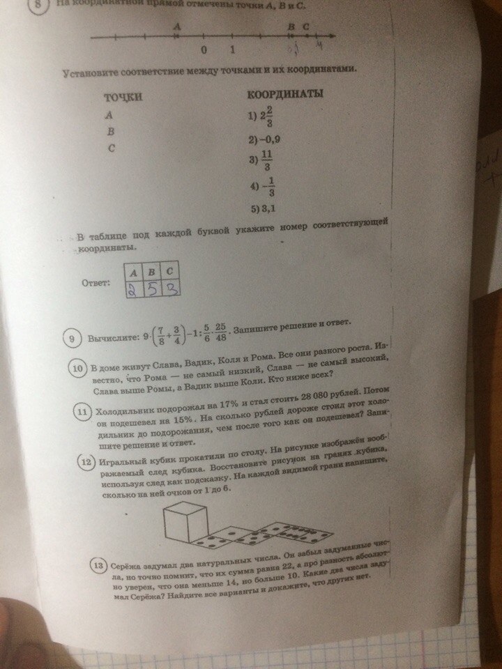8. А (- 0,9) В (3,1) С (11/3)