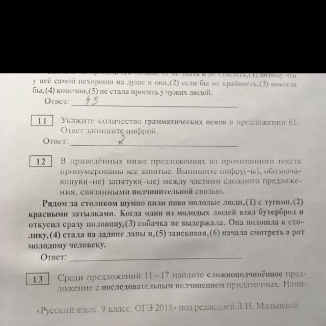 Приведённых ниже предложений из прочитанного текста пронумерованы все запятые.