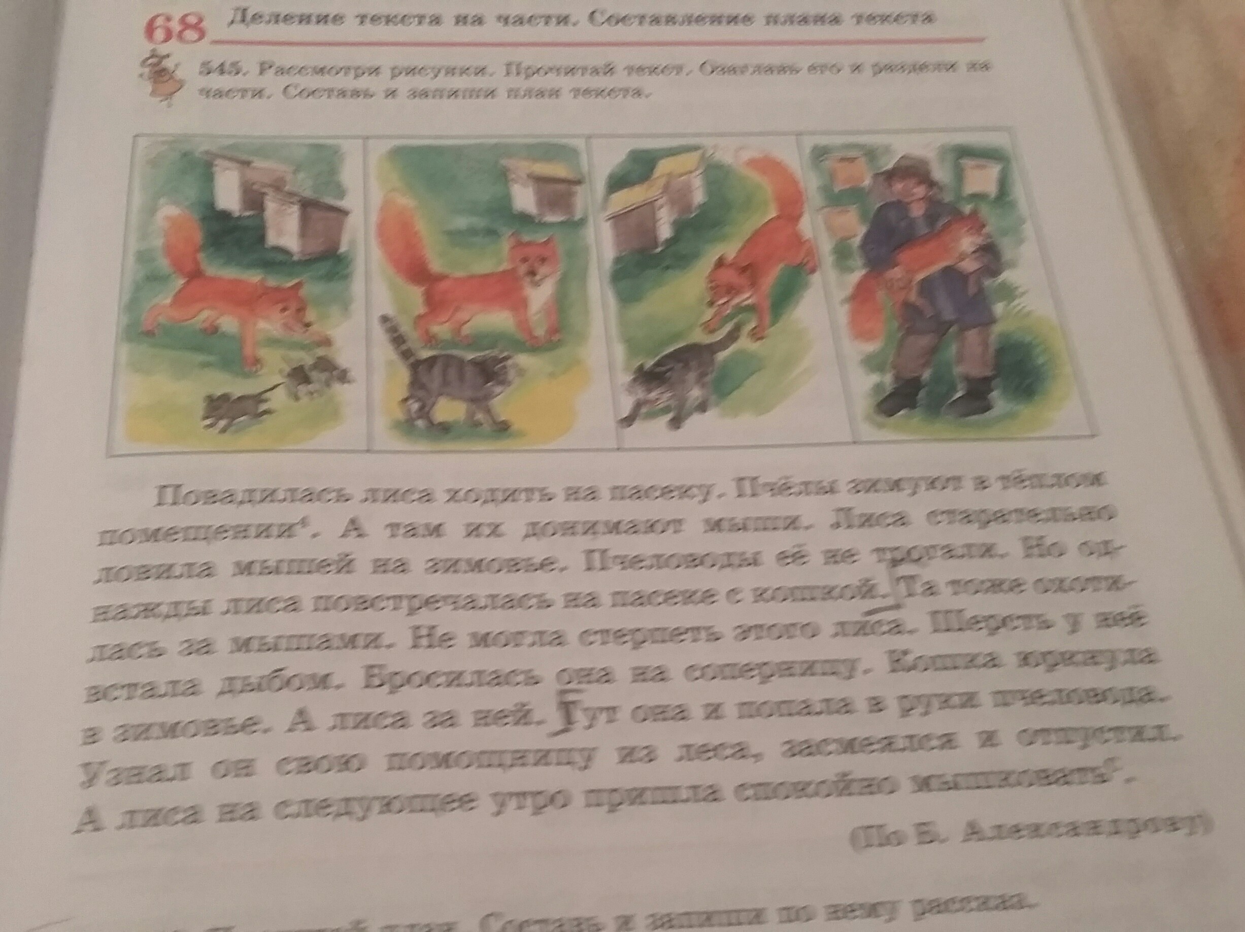 Лисица-помощница 1)добрая лиса 2) встреча с кошкой 3)Лису поймали