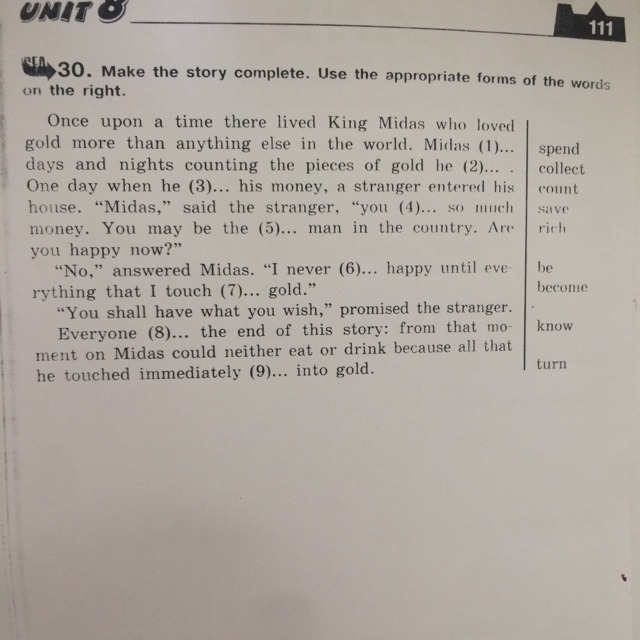 1) spent 2) collected 3) was counting 4) have saved 5) richest 6)be 7) becomes 8) knows 9) turned