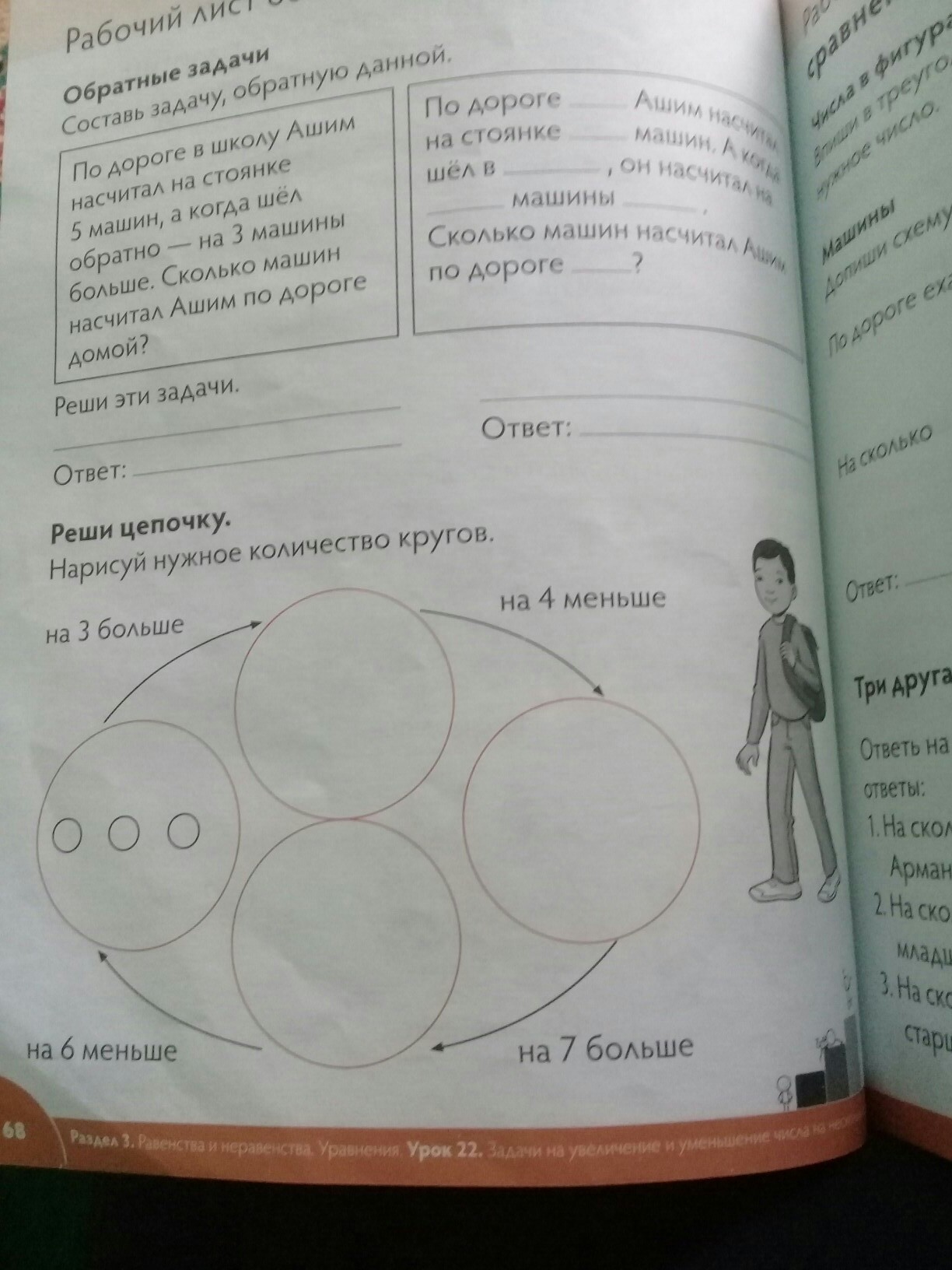Когда он шел в школу на стоянке увидел 5 машин, в обратном пути на 3 больше
