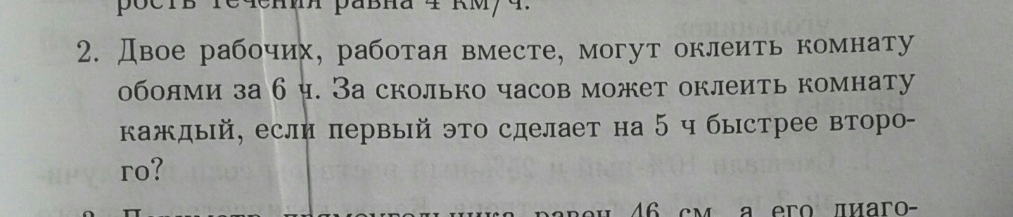 Пусть время работы первого рабочего хч, тогда второго (x+5)ч , так как вдвоем оклеивают за 6ч, то